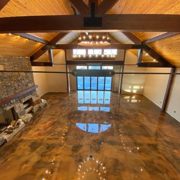 A 4-coat metallic stain with a moisture barrier, finished with a polyaspartic clear top coat was installed on this amazing shop floor in Bend, OR.