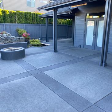 This beautiful back patio in Beaverton, OR was transformed with an acrylic cement textured overlay and a contrasting border.