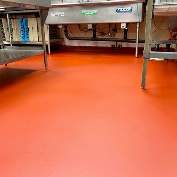 This is a seamless 1/4" urethane cement floor installed in the commercial kitchen at Jake's Famous Crawfish in Portland, OR.